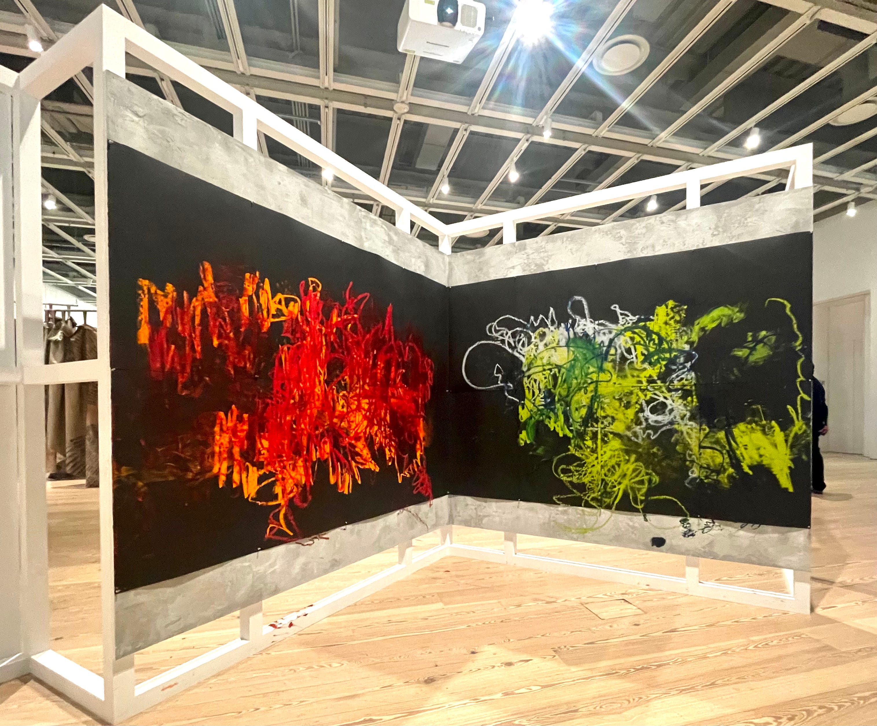 Lots of people were gathered around one installation that looked like a spectacular golden skirt radiating from an ominous hooded figure. You had to get close to realize the skirt was made of empty bullet casings threaded together. The effect of that eerie figure and the bullets was visceral. And as we looked, really looked at it from all sides, I felt a bond across with the installation’s maker, a Canadian artist Rebecca Belmore.