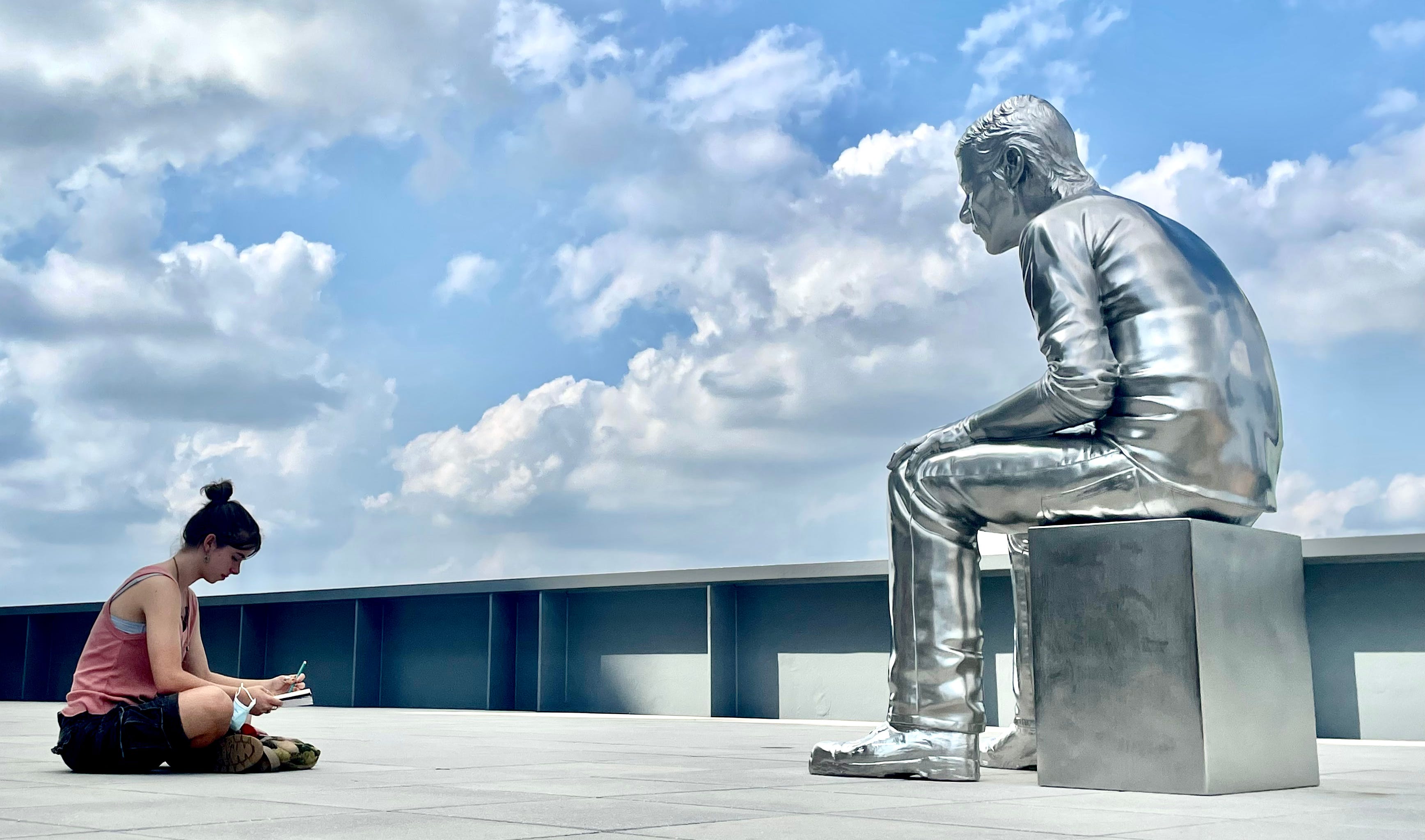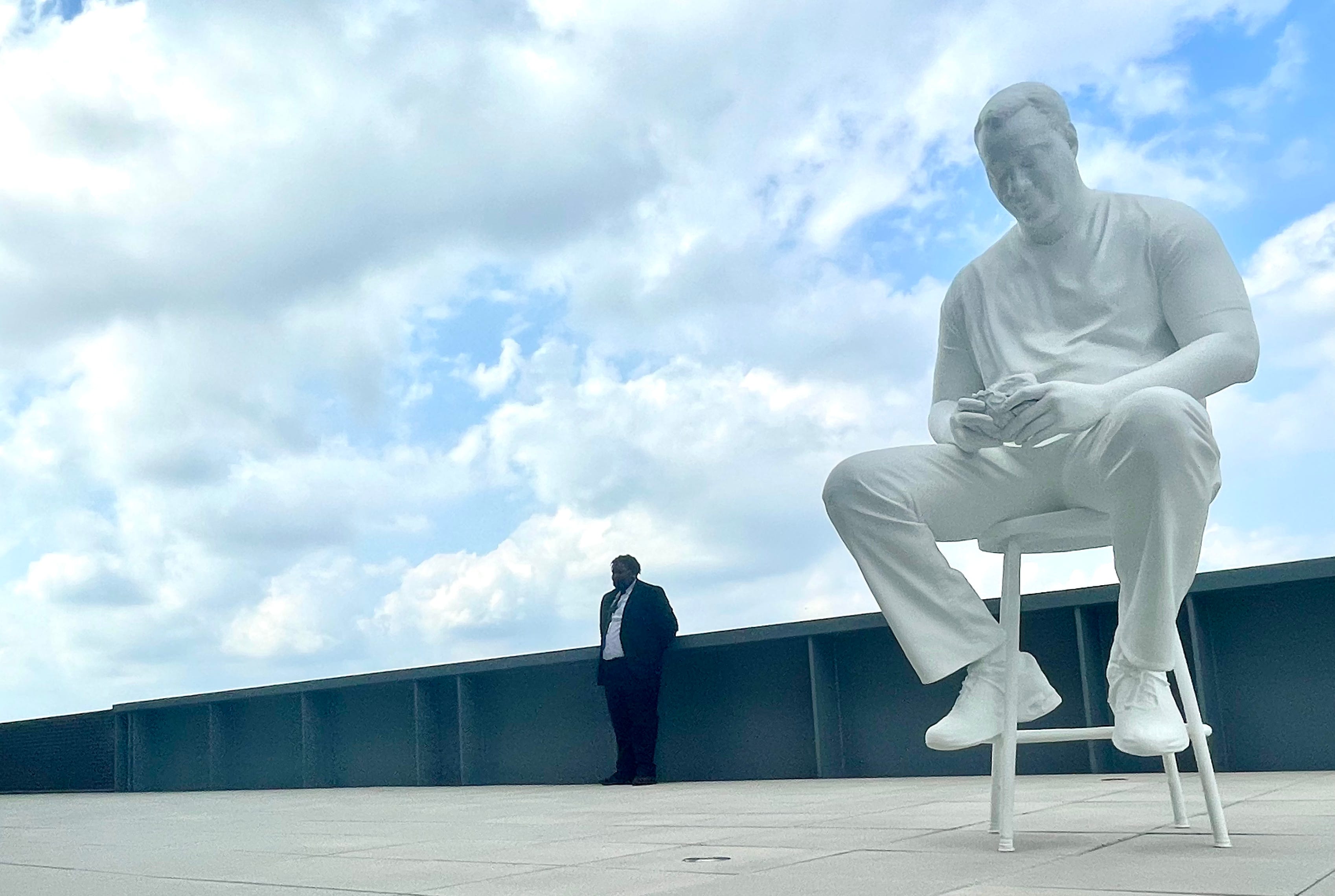 I thought about all this while walking through rooms and rooms of human-made art at the Whitney Biennial exhibition recently. There, the works loomed over you as massive statues or enticed you to bend down to look through tiny screens. And if you leaned in, you could see the places where an painter hesitated and where the lines were thick with emotion.